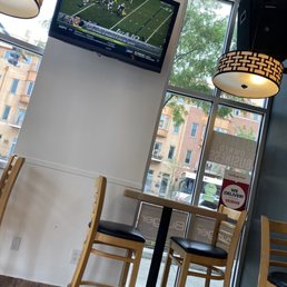 The Burger Point: on point for veggie burgers! Food: custom veggie patty (vs pre-made name brand party) is substantial and keeps it shape, even if or when it crumbles. It's formed from chunks of vegetables, mostly potatoes, I believe. Build your own burgers and pretzel bun options are awesome! Hand cut style fries are a generous portion and also very good. Are burgers the point of The Burger Point? Yes, they are, but don't count out the fries. Service: go to the counter to order and pick up your food: minimal, but pleasant. They knew what they were doing. Ambiance: not much: a few tables, a quiet TV and it's peaceful enough to feel enjoyable. It's unassuming. Random note: it looks dim from the outside and I almost thought that it was closed, walking by, so don't let that fake you out. It might be open, unless you're staggering by at 4 am. Then it's probably actually closed. ;-)